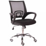 Современное кресло для персонала, с сетчатой спинкой, хромированной крестовиной и механизмом качания.