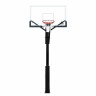 Стационарная баскетбольная стойка DFC ING72GU относится к серии антивандальных стоек. Точки крепления на этой модели находятся по краям щита, что повышает надежность конструкции. Кольцо крепится напрямую к основанию, что увеличивает максимально допустимую нагрузку на него.   Щит изготовлен из закаленного стекла толщиной 10 мм и имеет размерность 180 х 105 см (72’’). По периметру щит имеет кант из металла. В нижней части щита и на стойке установлено защитное покрытие Poly Pade. Стойка комплектуется кольцом DFC R3 с амортизацией, которое выдерживает нагрузку до 300 кг в передней части. Бесступенчатая регулировка высоты с помощью ручки в диапазоне от 245 до 305 см. Основание стойки бетонируется с помощью 4 анкеров (в комплекте), размер ямы под площадку должен составлять 50х50см. В целях безопасности и во избежание повреждения оборудования запрещается висеть на кольце и других элементах баскетбольной стойки.