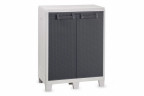 В комплекте 1 внутренняя пластиковая полка, выдерживает вес до 15кг с регулировкой по высоте, набор пакетов для мусора (3шт), гнездо для замка (замок приобретается отдельно), подъемная верхняя крышка с кнопкой-push, 2 распашные двери. Набор инструментов для сборки.